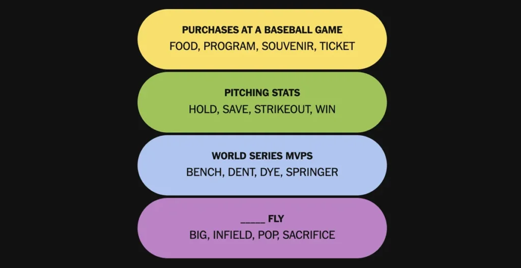 If you’re playing the NYT Connections Sports Edition #372 (September 30, 2025), you’ll notice today’s grid leans heavily toward baseball culture and terminology. Unlike some sports editions that mix football, basketball, and tennis, this puzzle celebrates America’s pastime with three of the four groups rooted in baseball. From ballpark purchases to pitching statistics, and from World Series MVPs to types of fly balls, every group reminds players that October baseball is just around the corner.