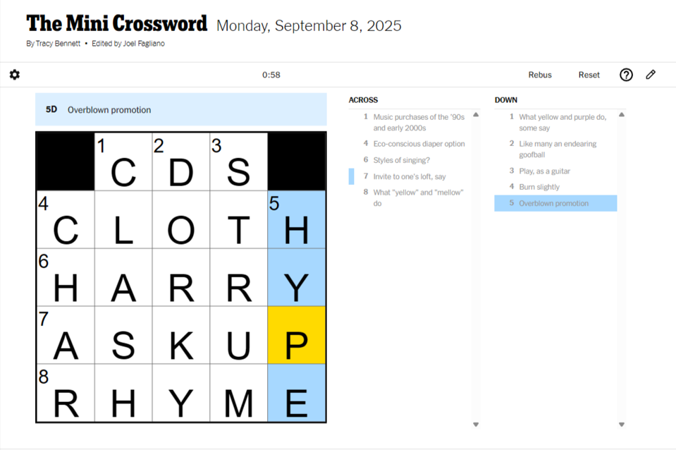 NYT Mini Crossword Hints and Answers — Monday, Sept. 8, 2025