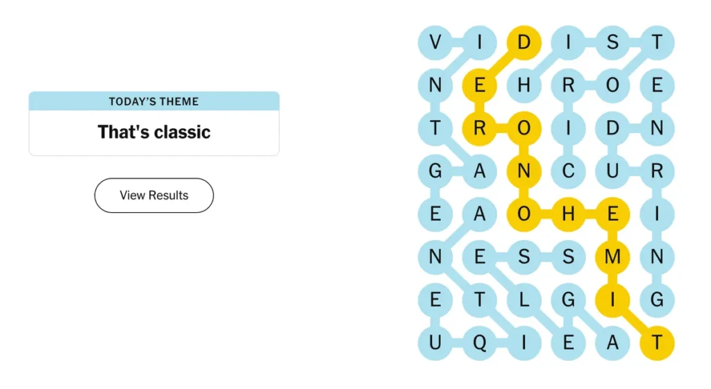 Today’s New York Times Strands puzzle comes with the theme: “That’s classic.”