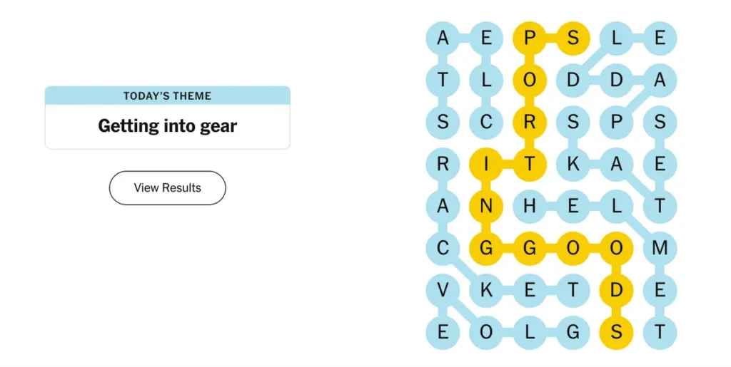 Strands challenges players to find theme-related words hidden in a 6×8 letter grid. Each puzzle includes: